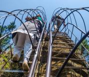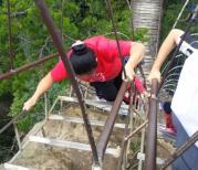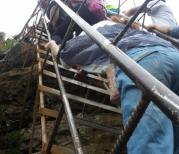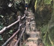 上下只有一条道,经过一番攀爬,终于到了天波府,植物长城。欣赏到这个美景确实要付出点辛苦。腿和衣服上都蹭了些泥,梯子直上直下,在首道门有二元存包,这个小钱一定要花,即使村了包,身上背的相机还是成了负担,需要分心和手来护着镜头,否则不小心可能就会磕到,感谢儿,勇担重担,背包和拿相机。