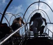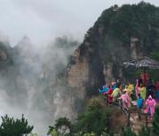过了乌龙寨,天波府就近在眼前了。 不过,想看美景,还得先过几乎垂直的铁梯这关才行 不断有往回走的游客兴奋的“抱怨”差点把小心脏给吓坏了。经历了艰难的跋涉,当到达天波府的那一刻,你一定会和我一样觉得前面的辛苦绝对是值得的,很难用言语来表达天波府上看到的震撼的美景。 天波府的壮观,根本不是几张照片所能体现出来的