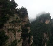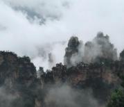 天波府位于杨家界景区内,是杨家界的经典景点之一。在乌龙寨附近,山顶上的一块平台,周围环绕数十座悬崖绝壁,场面宏大,远远看去就像残垣断垒一般,当地人相信这是当年杨家将“天波府”的遗址。路上要攀爬一段接近90度的铁质人工扶梯,非常陡峭,不过扶梯四周有铁圈维护,可以说是有惊无险。旅游团基本不会去,我们去时下着小雨,云雾缭绕,美极了!