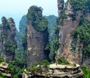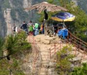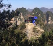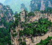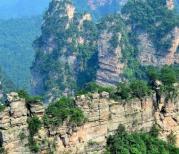 去天波府需要走过晃晃悠悠的索桥,攀上垂直90度的悬梯才能到达天波府山顶,天波府下有很多座石墙,皆相对平行而立,高矮参差不齐,气势恢宏万般景物尽收眼底。 与张家界的其他景观不同,这里的石林排列有序,一排排,一片片,如战队,如列兵,极有气势。最为惊奇的是一层层山岩竟形成了巨大的天然石壁,如同残旧的城堡遗址,如断裂的长城废墟,真令人赞叹不已。