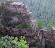 天波府应是北宋抗辽名将杨业的府邸,这里的天波府其实就是峰顶绝壁上的一小块平台。来前,以为是很大的一个建筑群呢。看了资料,知道在这个平台前,可看到有10座石壁,平行而立,参差不齐,又称天然长城,它把它称作杨家将的天波府有些愕然。