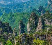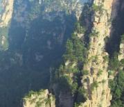 登上天波府山顶,顿觉天高眼阔,云淡风清,万般景物尽收眼底,真有一览众山小的感觉。走近扶栏,只见远处群山垒障,连绵不绝,近处座座石峰,浑然天成。更奇的是,四片峰石整齐如城墙般耸立,又像训练有素的将士列队接受检阅,极尽造化之功。 环视四周,远山近壑,壮观灵秀,满目空旷,开阔无比,奇峰异石,佳景天成。与张家界的其他景观不同,这里的石林排列有序,一排排,一片片,如战队,如列兵,极有气势。在天波府不得不感叹天下竟有如此仙境,真是一个与世隔绝的隐居之地,若身居于此,当土匪又如何?