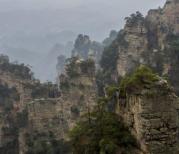 从乌龙寨继续向里走,便是到了天波府了。有道是,不到乌龙寨不算去过张家界,不到天波府不算去过乌龙寨!天波府是座独立的孤峰,四周都是陡峭的悬崖,有一座铁索悬桥与乌龙寨脚下的山崖相连通过铁索悬桥到达对面的山腰,沿山体有一架几乎垂直的铁梯通向山顶,爬上去,就是天波府的观景台了。 站在天波府眺望,眼前顿时视野开阔,极目四望,四周都是陡峭的山崖。与张家界其他地方的山崖不同,这些山崖像一堵堵的石头高墙。真正是奇特的石墙啊!