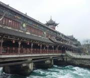 都江堰水势之大很震撼,这还没到丰水季,真到了雨季会更震撼。乘电瓶车到鱼嘴,感叹古人的智慧。从鱼嘴过安澜索桥登到二王庙,后乘步云廊电梯爬到了玉垒阁最高处,吹着凉风,俯瞰都江堰市全景和水利工程的全貌,是人文与自然的完美结合。