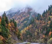 奶子沟的树种主要由桦树、松树、柏树、枫树和各种乔木组成,在蓝天白云下的树叶呈现出紫红、粉红、橘红、金红、深黄、草绿、黄绿等等颜色,色彩斑斓,美轮美唤。彩林的美景只有你走到了那里才能感受到,谁想要找到合适的词来形容彩林的美都会感到词汇的匮乏和苍白。如果你没去过,明年去感受感受吧,它会带给你意想不到的震撼和惊喜。