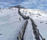 达古冰川因为温度骤降,早上竟然还在飘雪,酒店老板说今天的达古冰川雪很厚,当时那个激动劲啊,哈哈,终于满足了这么多年想看到雪的愿望了。然后就进入景区了。 进入景区的话呢,是要先做观光车然后再做索道的上去的。