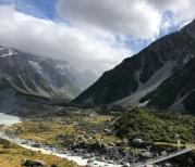 库克山国家公园位于南岛中部,风景极佳,今年去时正赶上下雨,云雾中开到山下,天逐渐放晴,库克山真容逐渐显露出来,清新的空气,鲜绿的青草,云雾缭绕在半山腰,覆盖着白雪的山峰,沿着塔斯曼步道,看到了壮观的塔斯曼冰川!
