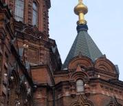 圣索菲亚教堂这是当年沙俄的随军教堂。今年7月3日开始包装维修,维修期一年。据广场上一对老年夫妻讲,当年哈尔滨还有一座尼古拉大教堂,规模比这座大得多,后来被拆了。圣索菲亚大教堂因为当年被圈在哈一百院内作为仓库,得以幸免。