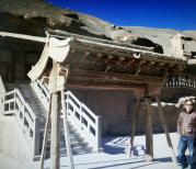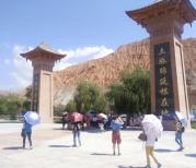 坐上了展示中心的大巴到了莫高窟景区实地参观。景区门口,导游姑娘们将游客分成若干组,并给每位游客都配备了保持一定距离才有效果的语音接收装置,再各自带上一组游客进入洞窟群参观。这样游客既能清晰地收听到她的讲解,也不容易掉队!有导游讲解的洞窟基本都是有特殊看点的,大家听得认真,秩序自然也好!待逐一讲解参观完后就是自由参观时间,静静地游走在这些拥有千百年历史的大小洞窟与残缺佛像之中,感觉好似在穿透时空,与创造了这一切的祖先们对话!