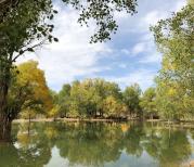 金塔胡杨林——意外的惊喜,此次西北自驾游,本来是打算去额济纳的,但时间没有计划好,太早了,离胡杨林变黄至少还得10天左右,所以放弃继续西行,而是从嘉峪关往回走去张掖,路上经过金塔胡杨林,本来没有抱什么希望,只是路过一下,甚至在景区门口看到一片片的绿色,还在犹豫到底要不要进。既来之则安之,进到景区中心的金波湖,给人大大的惊喜。虽然叶子黄的确实不多,但是有一片一片的湖水,衬着蓝天,实在漂亮!景区布局合理,虽然是人工林,但是保持着相当多的野生环境,值得一看。