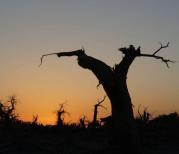 去额济纳怪树林看日落的人多的不得了!稍微有点说法的树前都围满了游客。太阳高高挂在西天,很多人就登上山岗,在那里等候。我个人觉得在怪树林观落日还是在树林中更好,在高处只能看到太阳西下,其余的景色因光线渐暗,什么也拍不到。事后,开车师傅就很后悔,他就在山头上。而我在树林中,不仅有很美的日落,还捕获了很多夕阳下的枯木树影,还有暮色中的半个月亮挂树梢。