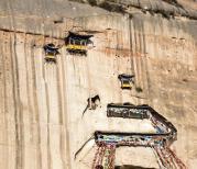 距今已逾1600多年,来到马蹄寺一定会颠覆你心目中传统的寺庙形象,它没有森严宝殿,没有琼楼玉宇,没有古木参天,它有的只是一面巨大的陡直平整的红色光秃崖壁,山壁里开凿了上下七层有如迷宫般的洞窟,气势恢宏。