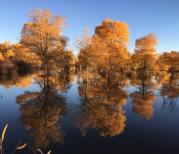 金塔胡杨林——游西北大环线到了酒泉,导游让我们上午休息半天,下午游张掖。正好,10月7日,是胡杨林叶子正黄时,约了出租车早上6点到宾馆接,6:55分到达公园门口,正好7点开始入园,时间紧,买了园内游览车票第一站就坐到最美的金波湖段,果然来的正是时候,日出,最美的秋叶都看到了。10:00准时从园区出来,坐上早上和司机约好的原出租车回宾馆,刚好11:30,时间刚刚好。
