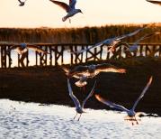 居延海——蓝天、白云、碧水、芦苇、海鸥、夕阳,每一个瞬间都是那么美。去居延海一定要去看日出或日落,当太阳升起或落山的那一刹会看到最美的居延海。