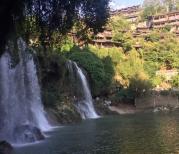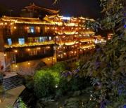 芙蓉镇处于一条河两侧的山谷,一条瀑布在镇中倾泄而下,很壮观。小镇商业化也不是很严重,米豆腐有些吃不惯,但炒的小河虾脆脆的很好吃,晚上的夜景也漂亮。