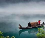 东江湖确实很美,船在湖中游,我在船上坐,游船上的游客都是三五成群的组成的一个个小团体,女人们叽叽喳喳说着笑着闹着拍着照,但这一切热闹丝毫不会影响到我,我只静静的看着湖水碧波荡漾,凭窗远眺那青山上若隐若现的雾,那雾就像一股股仙气在连绵起伏的绿色山峦之间飘来荡去,碧绿的湖水如此的秀气,丹霞地貌的群山又是何等的俊美,它们遥相呼应着,那山那水那雾气浑然一体,美到让你情不自禁陶醉其中。灰蒙蒙的天空,下着总也停不下来的小雨,这样的天气,东江湖都如此的吸引人,那么蓝天白云下的东江湖又该有怎样的迷人!一个小时的船游东江湖很快就结束了,它的美丽让人流连忘返、依依不舍,但终归只能放在记忆中了