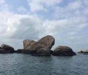 吃完午餐去的天涯海角,事实上天涯也就是几块石头而已,不过寓意不错 我喜欢三亚,喜欢三亚的碧海蓝天,喜欢三亚的白云朵朵,喜欢三亚的热情,喜欢三亚的本地人貌似比我黑多了,哈哈 到达天涯海角海边了,由于是阴天,所以不是白云朵朵,不过也很美 向海里出发吧!好兴奋的说,海面风浪不是很大,依旧有点颠簸,不过超级爽,很能愉悦心情,让人忍不住大叫,像大海打招呼吧!