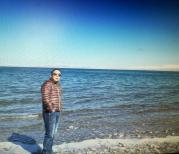 青海湖记——驱车延着109国道向西行驶了好几个小时,早已感觉窗外景致索然无味,倦意四起了。突然,在一左转上坡处右边蓝光一现,一下子让人提起了精神!再望过去,是一片被铁丝围住的草场,而青海湖已远远地展现在草场的那头!继续往前行驶,不时有成群的绵羊屁颠屁颠地穿过公路,通过铁丝网中的大门进入草场,样子都蛮可爱!我们开车跟着羊群,经过大门也进去了。门里有牧民望着我们,但并没拦车。我下去跟她打招呼,顺便说明来意,还拿了一点钱交给她当成借路费。这样,我们直接通过最快捷的路线向湖边挺进。离湖越近,越是海天一色的景象,越按捺不住心情!等真正置身湖边,迎面吹拂着清风,望着空中低飞的鸟儿和看不着边际的湖面,心情很