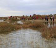 居延海本是水量充足的湖泊,但在六十年代开始干枯。调水以后,重新焕发了勃勃生机。如今美丽的居延海,碧波荡漾。成群结队的红嘴鸥在波光粼粼的水面翻飞嬉戏。