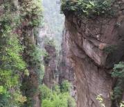 十里画廊,名气不大,是《捉妖记》取景地,才为人注意到,从天子山索道下山后,坐景区公交15分钟车程到的十里画廊,在这,可以选择步行,也可乘坐小火车,38元每人。我建议,如果时间多,可以自己走走,并不长,步行来回1个多小时即可。十里画廊廊长5公里,峡谷两岸林木葱茏,野花飘香;奇峰异石、千姿百态、像一幅巨大的山水画卷,并排悬挂在千韧绝壁之上,沿途有转阁楼、寿星迎宾、采药老人、夫妻抱子、三姐妹峰等景点。