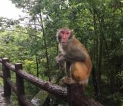 十里画廊是索溪峪景区的精华景点,大家有点累了,就选择了乘坐游览小火车欣赏一下这一景点,小火车就像在画卷中蜿蜒穿行,两边不时掠过一处处有着奇特造型的山峰、石壁,大家隐不住一阵阵惊呼,到了终点站下车,等候我们的是一只只可爱的猴子,猴子不太怕人,很好玩。