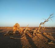 额济纳胡杨死后千年不倒,倒后千年不朽,就是看这的吧。大片枯死的胡杨林,用千奇百怪的造型努力在世间再挣一席之地,有点悲凉。落日时的怪树林更有味道。