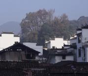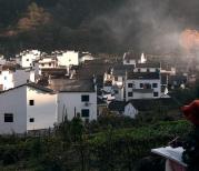 石城主要想游赏的是日出、晨雾、炊烟,如果是深秋,还可以欣赏红枫叶景色。从婺源县城到石城观景地点,车程要一个小时。我们是早上5点从县城出发的,进入石城道路一旁已停满车辆,观景的山头也已人满为患,大多是摄影爱好者