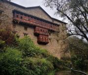 来马尔康之前,爸爸妈妈都说一定要去卓克基土司官寨看看,所以来到马尔康第一站就是这个土司寨。 早饭后雨越来越大,开车到了土司寨停车场,但是就是没有下车,雨小了一些才步行到土司寨。土司寨和西索民居在河对岸,可以走索桥和石桥过去,因为不想重复路线,我们先走的索桥进再走的石桥出。 土司寨门票是60元