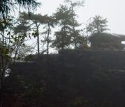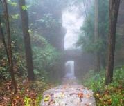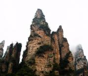 第二天还是从森林公园门进入黄石寨的,原本的打算是索道上步行下,看了天气还是阴雨绵绵,所以改为索道上下。山上山下天气差很多,索道上山后,迎接我们的还是一片雾茫茫。如果天气晴好,黄石寨景区大概需要2个小时,只是因为去的时候仍然是烟雾笼罩,对面的山峰完全看不见,所以也就只能匆匆走过,倒真似了朱镕基的这句题词“张家界里有神仙”,罢了,就当在云里雾里同神仙同游一回。古老的寨门依然存在,一夫当关,万夫莫开,说的也就是这里了。雾海金龟,这倒是如了其名,雾中的龟石,若隐若现。猴帅点兵,嗯,只能看到雾海翻腾了,有人说明知道那么糟糕的天气就不应该上山来,但我觉得,不一样的天气不一样的心境,看到不一样的景色,既然来
