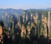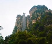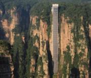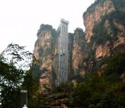 从武陵源景区大门进入后首先乘坐接驳车到百龙天梯站下。一下车就被百龙天梯的气势所震撼,抬头仰望,在山崖峭壁上那道雄伟的钢铁之躯,将原本崎岖的山路变为66秒的瞬时直达,66秒的景区交通,虽然只是短短一瞬,但它使游客有奇迹般的体验,这是中国的首创,世界的最高,堪称人间的奇观。当电梯穿过山体后,透过透明的玻璃,张家界奇秀的山峰逐渐展示在眼前。