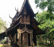 黑庙也叫黑屋,是泰国艺术家Thawan Duchanee建造的私人博物馆。黑庙并不是真的庙,只是因为整体色调是偏黑色,再加上清莱有座著名的白庙,才被人称为黑庙。它的建筑是全实木,里面收藏了艺术家许许多多的艺术珍品,有动物毛皮、牛角、画像、大贝壳、抽象雕塑等等…漫步在花园里的各个黑色小屋,他们色彩浓郁,形状奇怪,艺术气息之浓,让我感受到了黑屋主人的清奇脑洞,真是让我挪不开步,舍不得走了。