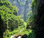 天坑地缝国家地质公园位于重庆市武隆县,著名的电影“黄金甲”就选择在天坑地缝内,几栋古建筑陈列在地,沧桑满目,周围绝壁耸立,水流潺潺,自然景观浑然天成,留在建筑内的展示,也表达了好山好水好风光。