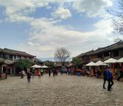四方街,位于丽江古城中心,交通四通八达,周围小巷通幽,据说是明代木氏土司按其印玺形状而建。这里是茶马古道上最重要的枢纽站。明清以来各方商贾云集,各民族文化在这里交汇生息,是丽江经济文化交流的中心。四方街以彩石铺地,清水洗街,日中为市,薄暮涤场的独特街景而闻名遐迩。其四周6条五彩花石街依山随势,辐射开去,街巷相连。四通八达,交通极为便利。