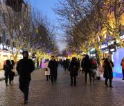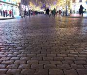 第一次有机会逛哈尔滨中央大街 很长的一条步行街 路面都是用同样尺寸的岩石铺设的 看起来很有历史感 晚上夜景分外好看 树上挂满彩灯 正值冬季 路旁立漫各式冰雕和雪雕
