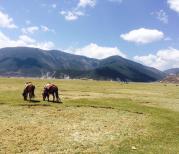 纳帕海景色挺好,但其实这个草原很小,骑马有三条路线,选了C,说是做活动280一个人。草原中间有个民族服装照相点,可以抱小羊骑牦牛还可以射箭。但喊价完全是看老板心情。