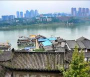 老的重庆,譬如朝天门已是高楼林立,感受老重庆,就得乘轻轨2号线去磁器口。2号轻轨,就如时光穿梭机,从繁华的解放碑商圈,穿越到明清风的磁器口。 磁器口是一个古镇,嘉陵江边。原来大约是郊区,随着城市的快速扩张,这一片现在也呈现出都市的繁华。古镇就成了现代都市包围的孤岛。 大都市里的古镇,游人自然很多,人头攒动,熙熙攘攘。这里有很多小吃:陈麻花、毛血旺、酸辣粉、椒盐花生等等,可以边走边吃,也可坐在小店里慢慢吃。倘若爱好喝茶,你还可以去茶馆,或品茗,或看老街的行人。