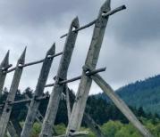 早上8点30分从宁波出发,开了正好5个小时到江郎山景区。在游客中心买了车票换乘景区观景车,时间很巧刚进入候车点就有一辆车还有3个空位,我们3个人直接上车。车子在曲折的盘山公路行进,不时摇晃,人在车中感觉像是在摇篮里。公路很窄,只能容一辆车子行驶,遇到来车需要倒车到开阔地带,等对方车子开过才能继续行驶。10分钟后就来到开阔地带,我们下了车,开始步行向江郎山景点。