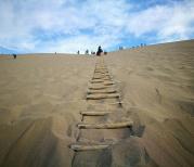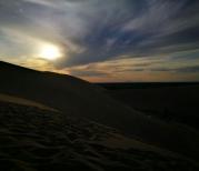 市区3路公车直达敦煌鸣沙山景区,最好下午四点多再去,玩到八九点,公车末班车九点。 去的时候有点晒,售票处旁边有休息室和寄包处,免费。还有一个邮政局,可以寄明信片。 进景区前有租脚套,但个人觉得,没有必要,下山时特意光脚踩进沙山,非常舒服的按摩沙疗方式哦。再则,穿着布鞋真正爬山也没进几颗沙子。穿好鞋去旅游的朋友另当别论。 进景区后右手边可以租骆驼,100元,骑一圈沙山,1个小时左右。期间可以让师傅拍照,20元,任拍,不在于钱多少吧,感觉很开心,骑骆驼的体验很特别值得一试,拍照呢我也选择了,毕竟是美美的,心情也跟着美了一番。 骑骆驼时很幸运,没有什么太阳。骑完再去月牙泉侧,太阳才慢慢从云层露出来,