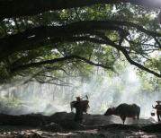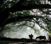 去杨家溪一定要在晴天的早上8:00——10:00之间,此时太阳高度角较小,光线较柔和,太阳光穿过古榕树隙,人为的放烟雾,此时会有人打扮成放牛郎的样子牵着大水牛缓缓走出…… 还好是在冬季,有枫叶可以拍,门票很便宜,20元,还是值得一看的。