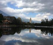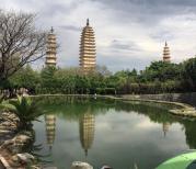 崇圣寺三塔真的很大很漂亮,在聚影池拍到了三塔倒影,真是太棒啦!对啦,门票是有义务导游讲解和,开始我们还不知道。到了财神殿放生池那里的时候,好心的义务导游看到我们四个人,主动说我们门票包含义务讲解,真心太好了的女导游。
