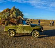 所谓“额济纳树林”,是数百年前因自然灾害——极端的干旱而致成片的胡杨枯死,且干燥的环境让胡杨枯而不腐、挺立不倒,才使今人能观赏到形状各异的胡杨造型。在历史上黑城国战士战死沙场的演义之下,怪树林仿佛是阵亡将士的木化,呈现出一派凄凉景象。到此一游,让人心生奇想,别有情趣。