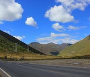 卡子拉山 高山上除了草甸,完全看不到树木,可视野却是极其的辽阔,天空上那一层层又厚又白的云朵,就像是伸手可及的棉花糖;远处的雪山,也似乎和视线是水平的了。 在卡子拉垭口,空气是稀薄的,大风是猛烈的,风景是美丽的。