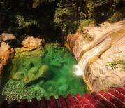 翡翠谷水非常清彻,设施全,非常值得一去。不愧叫翡翠谷,很不错 也不高 爬起来也不累!环境很干净,人也不多,很好玩~翡翠谷真的很美,景色是自然形成的那种美