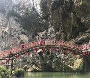 洞天仙境号称“华南第一天坑”,是天然景观,大自然的杰作,从狭小的洞口进来,豁然开朗。抬头望去,头顶像是被仙人开了个椭圆形的洞口,可以看到蓝天白云。明亮的阳光透射进来,仿佛可以看到一缕一缕的光线,四周是尖尖的山石以及浅浅的小山洞,底下有一湾碧潭,还有潭边的小桥。
