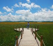 夏天去了五花草甸真的不错,我们去那天是刚刚下过雨,雨后的蓝天非常美丽,而且还有变化多端的云朵,真是饱了眼福了。我们一家三口走在木栈道上,沐浴在阳光之下,美啊!