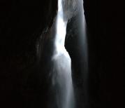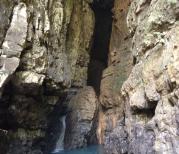 进入天意谷洞中天河景区,沿着蜿蜒曲折的溪流前行,一路上瀑布成群,多姿多态,美不胜收。走到溪流的尽头,有一处巨大的女阴洞,洞口有一尊亿年滴水溶岩形成的天然巨佛,进入洞内,幽暗神秘的洞窟顶轰然天开、天河从天而降,阳光从洞顶的开口处照射下来,像一束舞台上的聚光灯,照亮了这神奇的洞中天河,甚是壮观。河水在洞内流向大佛身边,经大佛足底、从女阴口流出,此洞集天母、天佛、天河为一体, 所以亦称为“三天神灵洞”,是举世无双的自然奇观。