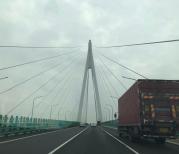 两年前走过一次全长36公里的杭州湾跨海大桥,当时被它的恢弘气势折服。今天天气那么好,又要再次见到它,让我们十足地兴奋。 孩子很爱这座大桥,因为发现了它的小秘密。从上海开往宁波的一路,桥边的栅栏从紫色开始慢慢地变化,开几分钟变成了蓝色,你能猜到后来发生了什么吗?没错!这是一座彩虹大桥,栏杆被涂装成了红橙黄绿青蓝紫的彩虹色,当我们看到红色的栅栏,就妥妥地到宁波了。
