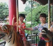 从兴安汽车站坐公车过去乐满地度假世界只要不到二十分钟。第一次来特别兴奋,门票价买的115,勉勉强强对得起这个数字。里面很多都是需要自己掏钱玩的游乐设施,小孩玩的小型游乐设施比较多。今天去的时候人不是特别挤,天气也不错,心情好,玩得开心。里面特别大,到处都是湖,环境挺好,需要花整整一天时间可以全部逛完。