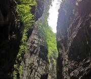 武陵山大裂谷是一个非常奇特的地方,景观可以说是独一无二的,长达数里的裂谷地缝,最窄的地方只有一两米,裂谷左右对称,假设有神力推动,完全能合在一起,所以这个地方叫大裂谷而不是叫大峡谷。