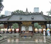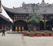 大慈寺位于成都市中心,与繁华的春熙路相邻,周边商业繁华(与上海的静安寺一样),里边宁静的世界与外边繁华的世界完全不一样,很多人都不知道原来里面有新世界。寺院已有千年历史,屡毁屡建,现有建筑都是近代重修,规模宏大,香火鼎盛。